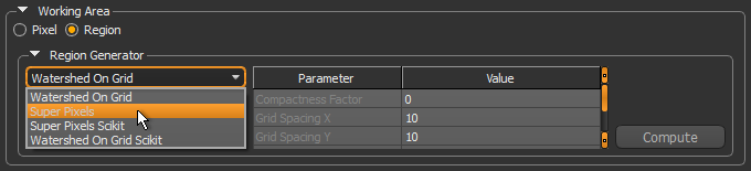 The different algorithms that can be used to generate regions from the selected dataset are described below. In future releases of Dragonfly you will be able to provide your own region generators.