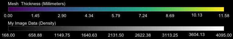 Image data, regions of interest, multi-ROIs, and meshes can be viewed in the 2D views that are part of a scene. 2D views can include text annotations, which are interactive and can be used zoom, scroll, and adjust window leveling, as well as a scalebar and legends. A 3D Cursor is also available in Track mode to link the different axis representations of volumetric data, which are color-coded for easy identification. Orientation indicators and axis colors are available in all 2D views to help orientation your images in 3D space.