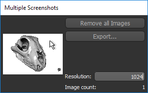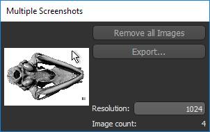The option to accumulate and then export multiple screenshots is available on the Multiple Screenshots panel, shown below. You should note that you can select different resolutions for screenshots captured from 2D and 3D views.