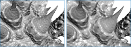 After generating a mesh, it is sometimes necessary to modify that mesh before further processing or analysis can begin. In particular, meshes extracted from volumetric image data obtained by CT or MRI devices often contain significant amounts of noise. Removing noise while preserving the shape of a mesh, as shown in the example below, is available in the Data Properties and Settings panel (see Smooth Mesh) and in the Mesh Smoothing panel.