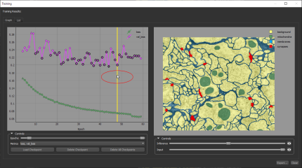 You can save a deep model at a selected checkpoint by opening the model's training history and then loading a saved checkpoint. These options are available in the Training dialog, shown below.
