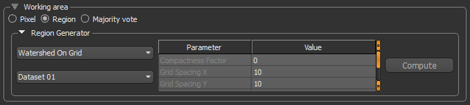 - Select the dataset that will used to compute the region in the Dataset drop-down menu.