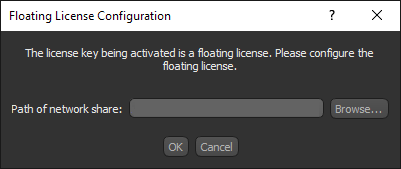- Enter the path of the network share on which you want the license server to be installed in the Path of network share field. You must have write access to selected network share and all systems that share the floating license must have read access to the network share.