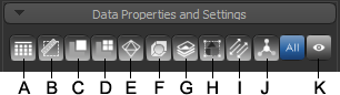 The buttons at the top of the Data Properties and Settings panel filter the objects that appear in the list.