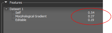 The relevance of each feature preset, on a scale of 0 to 1 and totaling one, is displayed in the features tree to help you judge whether the feature preset provides helpful information for the classification or not.