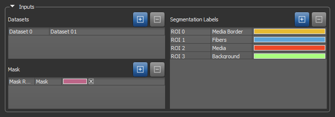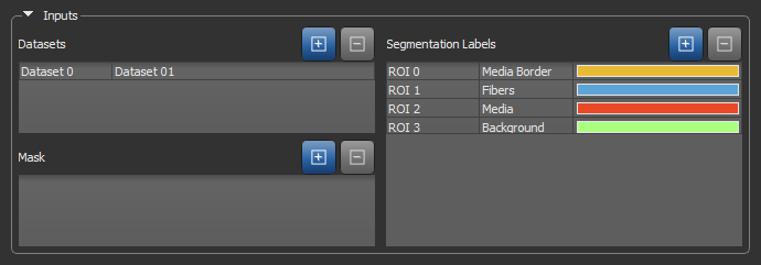 Refer to the following instructions for information about selecting the classifier inputs, which include the classification engine, dataset(s), segmentation labels, and mask(s). See Input Panel for more information about classifier inputs.