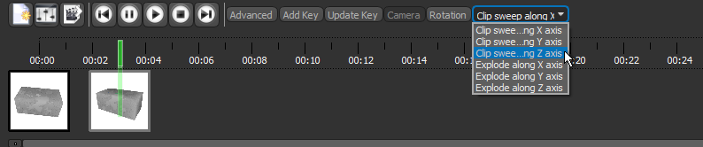 Creates a clip sweep along the Z axis of the selected dataset from +Z to -Z and then back to +Z. |