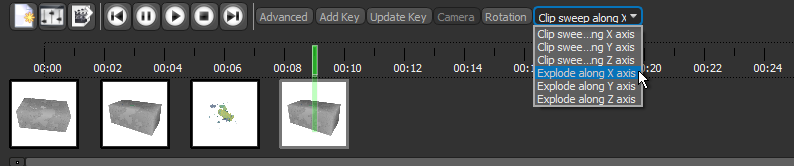 Creates a clip sweep along the X axis of the selected dataset from +X to -X and then back to +X. |
