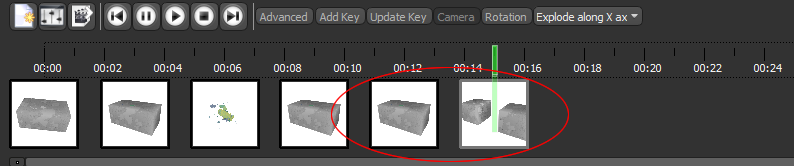 NOTE Three keyframes will be added to the timeline if you choose to add an explosion to a keyframe that is already exploded. The first is to reset the distance between the bricks to 0, the second to increase the number of bricks along the selected axis, and the third to set the distance between the bricks.