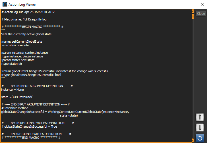 Choose Tools > Action Log Viewer to view the dialog shown below.