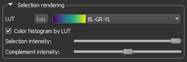 Allows you to select a Look-Up Table (LUT) function, which determines how colors are applied to the values of statistical attributes in the scene views. Applied LUTs can be edited interactively to optimize visualizations.