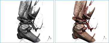 In image processing, LUT stands for Look-Up Table function. Dragonfly's LUT functions, which determine how regions within specific arrays of intensity or scalar values are displayed and colored, can be applied and edited interactively to optimize the 2D and 3D views of datasets and other objects. Depending on which look-up table you choose, the difference between the original and remapped version can be subtle or very dramatic.