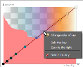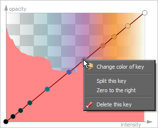 To choose a color for a selected key, simply click the shade you want in the large color box. You should note that hue saturation increases from bottom to top and that brightness can be adjusted with the slider on the right. Additional controls for choosing colors, as well as applying custom colors, are available in the Select Color dialog. You can access this dialog in the Histogram context menu.