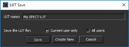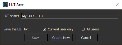 Provides options to save the settings of an edited LUT or to create a new LUT (see Saving LUTs).