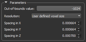 Lets you choose the resolution of the output 4D dataset as follows: Most precise… Uses the smallest voxel size of all datasets selected for the operation. User defined voxel size… Lets you choose the required values for spacing in the X, Y, and Z axes, which determines the voxel size. You should note that increasing spacing along an axis will reduce the number of pixels along that axis by downsampling. Conversely, decreasing the spacing along an axis will increase the number of pixels along that axis by upsampling.