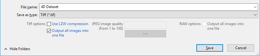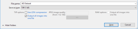 Lets you export the 4D dataset in the TIFF file format directly from the Create 4D Dataset dialog. |