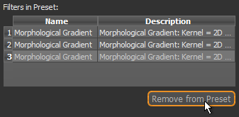 - To do so, select the filter you want to remove in the Filters in Preset box and then click the Remove from Preset button.