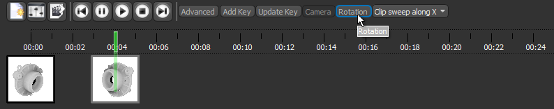 Rotations can be added to keyframes to show all sides of an object in an animated sequence. The direction of the rotation, as well as the sweep angle, are selectable in the Rotation Options dialog, which is shown below.