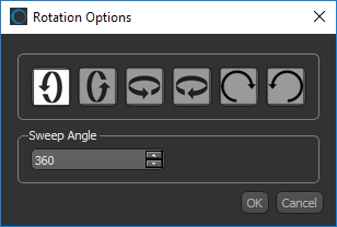 - Choose a rotation direction, as well as a sweep angle, in the Rotation Options dialog.