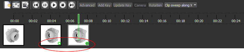 Note A small indicator appears at the bottom right of the keyframes that are linked by the rotation, as shown below.