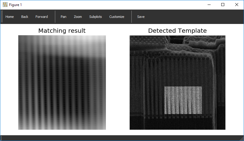 The preview returns a grayscale image, the matching result, in which each pixel denotes how much the neighborhood of that pixel matches with template. Note You should always set the template on the first slice in a selected range. |