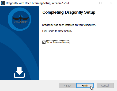- Click Finish to complete the setup of your new version of Dragonfly.