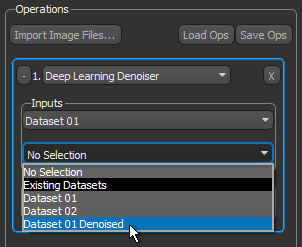 - If you chose Deep Learning Denoiser, select the required inputs in the Inputs drop-down list.