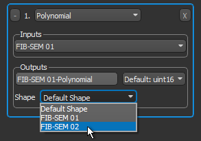 - If you are working with the Advanced Options, you can select the output geometry. You can choose the geometry of any object based on a structured grid — image data, region of interest, or multi-ROI — that is available in the Data Properties and Settings panel. You can also choose to keep the default shape, which is defined by the first input of your image processing workflow.