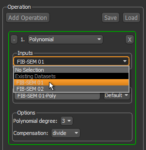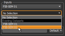 - Select the required input(s) in the Inputs drop-down lists. Inputs can be imported image data, as well as the outputs from other current image processing operations. Unless you are working with the Advanced Options, all inputs must have the same characteristics — size, location, spacing, orientation and data type — to be used simultaneously in an image processing workflow.