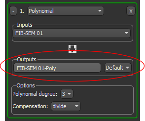 - Review the outputs that are available in the Output box. By default, each operation within an image processing workflow is added as an output and is set to create a new dataset.