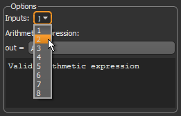 - Choose the number of inputs required for the arithmetic expression in the Inputs drop-down list.