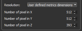 Resolution… Choose a resolution — Most precise, User defined voxel size, or User defined matrix — as required.