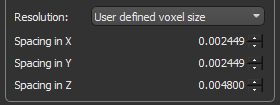 Note User-defined voxel size selections are limited to a factor of 10 of the original image data. User defined matrix… Lets you choose the resolution of the output dataset as the number of pixels in the X, Y, and Z axes. You should note that increasing the number of pixels along any axis will decrease the corresponding spacing value, while decreasing the number of pixels along an axis will increase the corresponding spacing value.