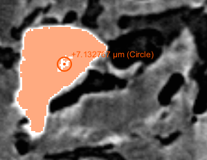 You use the Point & Click tool to grow regions of interest based on the standard deviation of intensity values and their connectivity. Threshold values are calculated for all pixels within the area of the selected brush in Add mode. In Remove mode, the threshold value is taken from the central point of the brush.