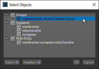 Note You can also import a session group from a saved session. In this case, select the ORS Session file (*.ORSSession extension) with the required group and then select the session group that you want to import in the Select Objects dialog.