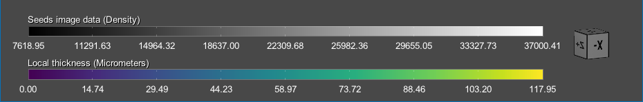 Legends are available for 3D views to show how values are mapped to the grayscale tones of image data and to the colors of scalar data. If required, you can re-position the legends by dragging them anywhere inside a view. You can also position a legend vertically or horizontally.