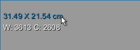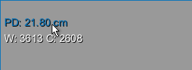 Indicates the current window leveling applied to the selected image data. You can choose to display the window width (W) and window center value (C), as shown below on the left, or the minimum and maximum values of the selected range, as shown below on the right. These options are available as a preference (see Miscellaneous Preferences).