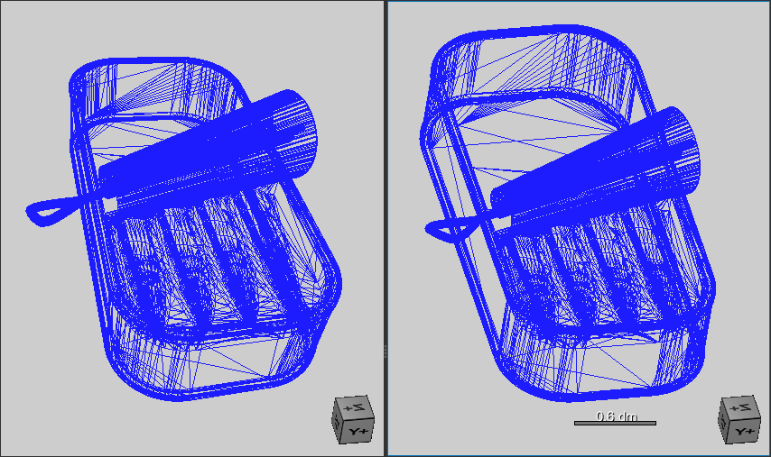 While working, you can easily switch between orthographic and perspective modes to get a better sense of an object. Orthographic projection mode is selectable on the Scene’s Views Properties panel and in the pop-up menu for 3D views. You can also choose Orthographic as the default projection mode (see Selecting the 3D Settings Preferences).